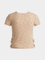 Get her ready for some fun in the sun with our natural ribbed t-shirt featuring a daisy print. Made with rib fabric and bow detailing on the side. This top matches perfectly with the flare leggings. Upgrade her little style today!