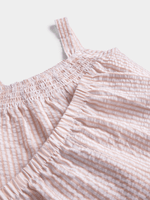 Elevate your little one's wardrobe with our adorable natural striped smocked cami set. Made from light seersucker textured fabric, this set features a smocked cami top and matching pants in a comfortable fit. The perfect set for playdates or outings.