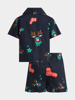 Get your little one in the festive spirit with this cute navy christmas print sleepwear set from Exact. Made from cotton single jersey fabric, this set features a reindeer printed shirt and matching shorts with an elasticated waist for an easy fit. Perfect for relaxing holiday nights, match with the whole family this festive season!