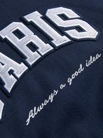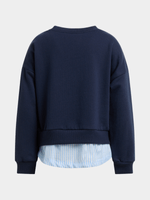 Keep your little one stylish and cool with this navy twofer sweat top. Made from cotton rich fleece fabric, it features a unique twofer design, graphic print, and ribbed cuffs. This top is a must-have for any young fashionista.