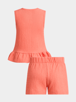Get your princess ready for summer adventures with this cute orange peplum top and shorts set. This set features a textured fabric, stylish sleeveless top with a flattering peplum, and shorts with an elasticated waist. Perfect for playdates or outings.