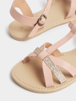 Get your little one ready for summer with these adorable pink and gold sandals. With a comfortable fit, these sandals are sure to become a favorite in her wardrobe.