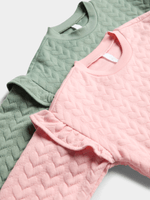 Stay cozy in this pink sweat top from Exact. Crafted from fleece for ultimate comfort. Featuring a ruffle sleeve detail and quilted heart design. Pair with joggers or jeans for a casual look. Perfect for everyday wear.