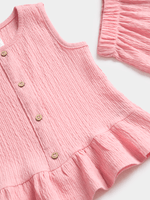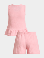 Get your princess ready for summer adventures with this cute pink peplum top and shorts set. This set features a textured fabric, stylish sleeveless top with a flattering peplum, and shorts with an elasticated waist. Perfect for playdates or outings.
