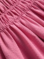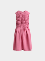 Get your little one ready for any special occasion with this textured smocked dress in a vibrant pink from Exact. This dress features textured seersucker fabric, side bow detailing that adds a sweet touch, and a smocked bust. Ideal for your little fashionista!
