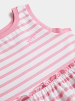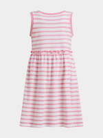 Get your little one ready for fun in the sun with this adorable pink and white striped dress. Made with soft cotton, featuring a chest embroidery, pink ribbed neck and sleeves , and a skater design. It's perfect for playdates or parties, and it's sure to become a wardrobe favorite.