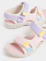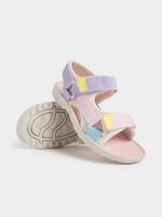 Get ready for adventures with these practical, comfortable and durable sandals. Featuring pink, purple, yellow and blue colourblock with velcro straps and a soft moulded footbed. These sandals are perfect for walking, climbing and having fun!