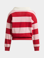 Get the little one ready for playtime with our red and pink striped rugby top from Exact. Made from comfortable cotton single jersey fabric, this top features a johnny collar design, long sleeves, and ribbed cuffs and hem. Perfect for adding a pop of color to any outfit.