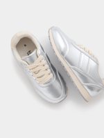 Get your little one ready for fun with these sleek silver runner sneakers. These sneakers are comfortable and durable, with a padded inner for comfort and a lace up for easy fit. Get your hands on a pair of these stylish kicks that are sure to add a touch of sparkle to any outfit.