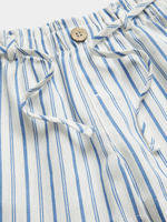 Get your little mini me summer-ready with our Exact white & blue striped paperbag shorts! Made from a linen blend fabric for all day comfort. Features an elasticated paperbag style waistband for easy wear and a flattering fit. Pair with a statement tee and sandals for a cuteness overload.