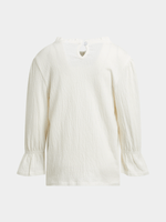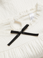Introducing our white crinke knit boho top, perfect for effortless style. Made from a breathable cotton blend, this top features a cute bow detail, elasticated cuffs, and a unique crinkle knit design. Pair it with your favorite bottoms for a stylish look!