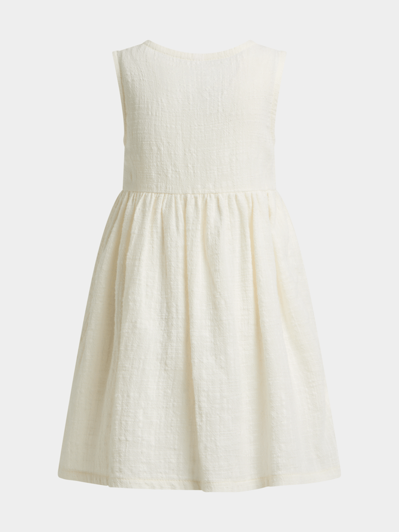 Get your little one ready for any special occasion with this white linen look dress. Made from 100% cotton fabric, this dress features a cute button through design. Keep your little one looking cute and comfy all day long!