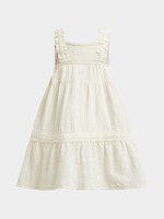Get your little one ready for any occasion with this adorable tiered dress from Exact. Made from 100% cotton linen like fabric, this dress features a tiered design, lacey trims, and elasticated straps, it's perfect for all-day comfort. Perfect for playdates or special events.