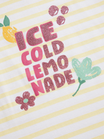 Dress your little one in a trendy style with this yellow and white striped t-shirt. Made from 100% cotton single jersey fabric for all-day comfort. Features a crew neck, short sleeves, and a fun graphic print. Perfect for mixing and matching with our bottoms for a unique look.
