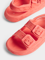 Step into summer with these vibrant peach pool sliders from Exact. These slides are comfortable, stylish, and easy to slip on and off. Enjoy the pool or beach with these fun and durable sliders.