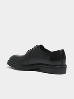 Upgrade your footwear collection with Fabiani's timeless black Classic Leather Derby. Made with high-quality leather, these lace-up shoes feature sleek style details for a sophisticated look. Comfortable and versatile, these shoes are a must-have for any wardrobe. Perfect for any occasion, these leather derbies are a great addition to your ensemble.