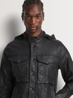 Introducing our Fabiani Black Coated Denim Jacket, designed for cool, laid-back style. Made from a comfortable cotton blend, this jacket features a large pocket for extra storage. Easy to care for with cool wash, warm iron, and dry-cleanable instructions. A versatile addition to any wardrobe.