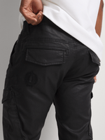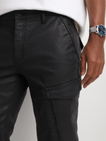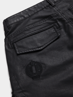 Elevate your style with Fabiani's Black Coated Utility Trouser. Made from denim, these skinny pants are designed for a premium fit. Features include a coated front pocket and a sleek black finish. With washing instructions that ensure longevity, these trousers are a versatile addition to any wardrobe.