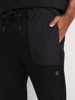Stay cozy in these stylish black combo fabric sweatpants from Fabiani. Made from a soft cotton polyester blend, they have a regular fit for all-day comfort. Easy to care for with hand wash and cool iron instructions. Perfect for lounging or running errands. Feel great and look great.
