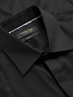 Elevate your formal look with our Fabiani tuxedo shirt in classic black. This slim-fit shirt features a concealed placket for a sleek finish. Made from high-quality cotton, it's easy to care for with warm wash, cool iron, and dry clean instructions. Perfect for any special occasion.