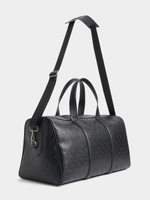 Travel in style with the Fabiani Black Fiore Monogram Weekender Bag. Made of high-quality pleather with MK patterns, this premium bag is perfect for weekend getaways. Just wipe down with a damp cloth for easy maintenance. Stay organized and trendy on your travels.