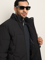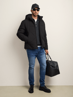 The Fabiani Men’s Black Irregular Quilted Puffer Jacket. Designed for you — the man who values outerwear shaped by craftsmanship and distinction. The irregular quilting introduces depth and modern character, while the deep black tone delivers timeless versatility. Crafted for warmth with a structured, refined silhouette, it brings confident presence to colder moments — considered and composed.