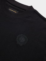 Elevate your casual style with our Fabiani Black Jaquard T-Shirt. Made with comfortable cotton fabric for a regular fit. Features a stylish design and easy care instructions. Perfect for everyday wear. Returnable for your peace of mind.