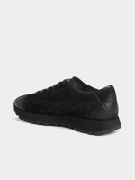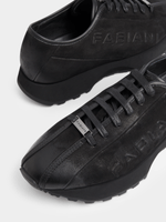 Step up your sneaker game with our Fabiani Black Leather Abstract Panel Sneaker. Made from high-quality leather, these kicks feature a unique abstract panel design and secure lace-up closure. Get ready to turn heads and make a statement with these stylish and comfortable sneakers.