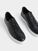 Step into style in these Fabiani Black Leather Court Sneakers. The classic design with seamless construction and a lace-up detail exudes sophistication. Crafted from premium leather, these sneakers offer durability and comfort. Perfect for completing any casual or semi-formal outfit.
