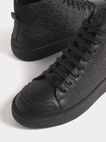 Step up your sneaker game with Fabiani's Black Leather Monogram High Top Sneakers. Crafted from premium leather with a stylish Mk lace-up detail, these sneakers are perfect for adding a touch of luxury to any outfit. Comfortable, durable, and returnable - grab a pair today!