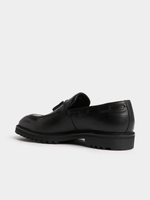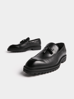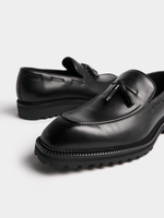 Step into refined sophistication with the Fabiani Men's Black Leather Tassel Loafer. Crafted from premium smooth leather, this elegant slip-on pairs timeless style with modern ease. The signature tassel detailing adds a touch of classic charm, while its sleek black finish ensures effortless versatility across formal and smart-casual looks. Comfortable, polished, and enduringly stylish—an essential for the gentleman who appreciates understated luxury.
