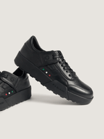 Step up your sneaker game with the Fabiani Men's Black Leather Tri Dot Court Sneakers. Made from premium leather, these sneakers feature a stylish tri-dot design and lace-up detail. Comfortable and versatile, they are perfect for everyday wear. Stay on-trend with these sleek kicks.