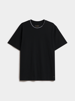 Elevate your casual style with the Fabiani Black Logo Neck Rib T-shirt. Crafted from soft cotton with a stylish logo neck rib detail, this regular fit tee is perfect for a modern laid-back look. Easy care instructions make it a must-have for everyday wear.