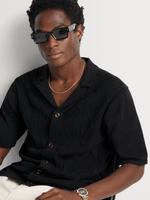 Elevate your style with the Fabiani black pointelle polo. This polo features a luxurious cotton fabric for ultimate comfort. Its regular fit ensures a flattering silhouette. Hand wash for easy care. Perfect for any occasion, this polo is a must-have in your wardrobe.