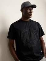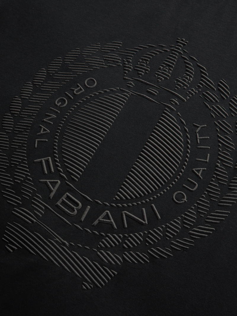 Sleek and sophisticated, the Fabiani Men's Black Rubberised Crest T-Shirt brings elevated texture to a timeless essential. Crafted from premium soft-touch cotton, it features a rubberised Fabiani crest that adds a modern, tactile finish. The deep black tone and tailored silhouette create a bold yet refined look—perfect for the man who values understated luxury with contemporary edge.