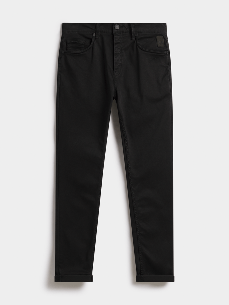 Elevate your wardrobe with Fabiani Black Smart Chinos. Crafted from comfortable cotton stretch fabric, these slim-fit pants feature a button fly and signature red stitching. Perfect for work, pair with a crisp shirt and blazer for a polished look. Easy care instructions included.