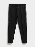Elevate your casual style with Fabiani's Black Tape Sweatpants. Made from a comfortable cotton-polyester blend, these pants feature jacquard tape detailing for a modern touch. With a regular fit and easy care instructions, these sweatpants are perfect for everyday wear.