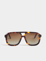 Step out in style with Fabiani's black tortoiseshell aviator sunglasses. Featuring a sleek design with plain detailing on acetate frames, these premium sunglasses are perfect for any occasion. With a gender-neutral appeal, they are sure to elevate your look while providing UV protection. Embrace the sunshine with confidence in these trendy shades.