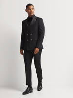 Step out in style with the Fabiani black tuxedo peak blazer. Crafted from a luxurious wool blend, this slim-fit blazer is perfect for any formal occasion. It features a sleek peak lapel and is dry clean only for easy care. Elevate your look with this timeless classic that exudes sophistication.