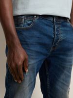 Elevate your style with our Fabiani Men's Blue Mid Wash Slim Denim Jeans. Made of high-quality denim fabric, this slim fit pair is designed for comfort and durability. Easy to care for with warm wash instructions, it's a versatile addition to your wardrobe. Perfect for any casual occasion.