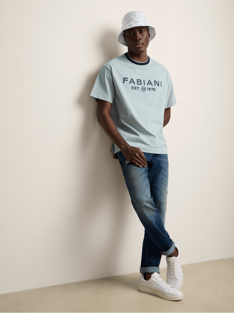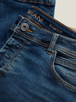Elevate your style with our Fabiani Men's Blue Mid Wash Slim Denim Jeans. Made of high-quality denim fabric, this slim fit pair is designed for comfort and durability. Easy to care for with warm wash instructions, it's a versatile addition to your wardrobe. Perfect for any casual occasion.