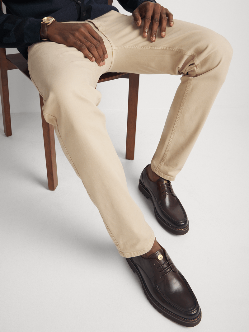 Step into refined distinction with the Fabiani Men’s Brown Leather Apron Cleated Derby. Crafted from supple premium leather, this style reflects Fabiani’s commitment to timeless sophistication and modern ease. The apron detail, sleek lace-up design, and cleated sole offer a blend of elegant craftsmanship and everyday comfort—perfect for the gentleman who values elevated simplicity.