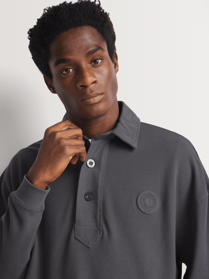 Introducing our Fabiani Broad Placket Polo Golfer in charcoal. Made from comfortable cotton knit, this top features a relaxed oversized fit for all-day wear. Easy to care for with cool wash instructions, warm iron, and dry cleanable. Perfect for casual outings or weekend adventures.