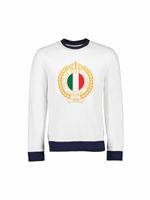 A classic crew neck is an off duty wardrobe essential. This Fabiani crew neck sweat in white has a retro-inspired design featuring contrast navy cuffs and neckline as well an embroidered Fabiani heritage crest on the chest to complete the look. Pair yours with slim-fit denim and sneakers for easy to wear casual style.