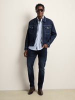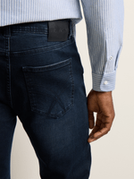 The Fabiani Men’s Dark Wash Slim Denim Jeans. Crafted for a modern, tailored silhouette, these jeans combine refined structure with everyday versatility. The deep dark-wash finish delivers a polished look that transitions effortlessly from relaxed settings to more elevated occasions. Designed for comfort and confident wear, they offer a clean, slim fit that complements a contemporary wardrobe.