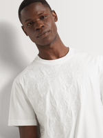 Elevate your casual wardrobe with our Fabiani Men's Natural Cream Shoulder Crest Embroidered T-shirt. Made from soft cotton, this oversized tee is easy to care for with cool wash, warm iron, and dry cleanable instructions. The intricate shoulder crest adds a stylish touch to any outfit.