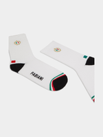 These Fabiani Embroidered Shaft Socks are made from a comfortable cotton blend with stretch for the perfect fit that keeps its shape. These classic shaft socks have a ribbed ankle and a smooth foot finished with a toe cap detail and an embroidered Fabiani crest.
