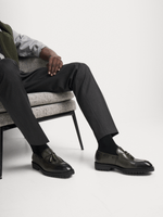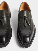 Step out in style with the Fabiani Green Leather Tassel Loafer. Made from premium leather with a stylish tassel detail and slip-on design. Versatile and comfortable for any occasion. Elevate your outfit with these timeless shoes that are built to last. A must-have addition to your collection for quality and style.