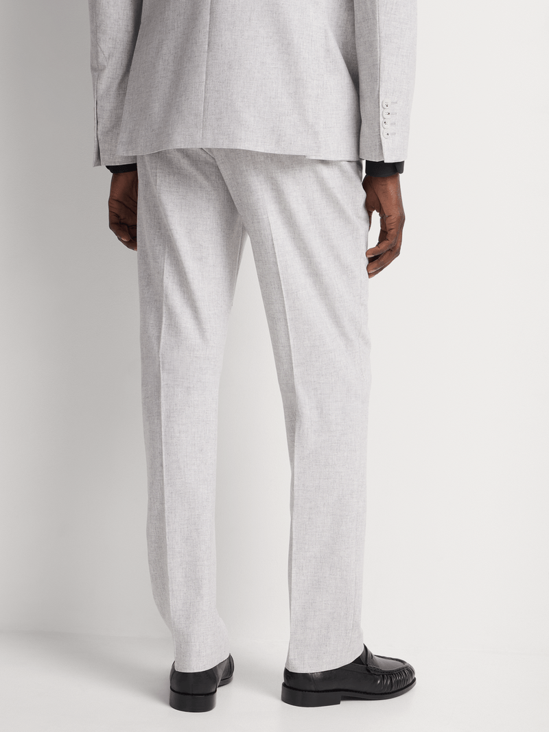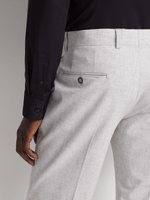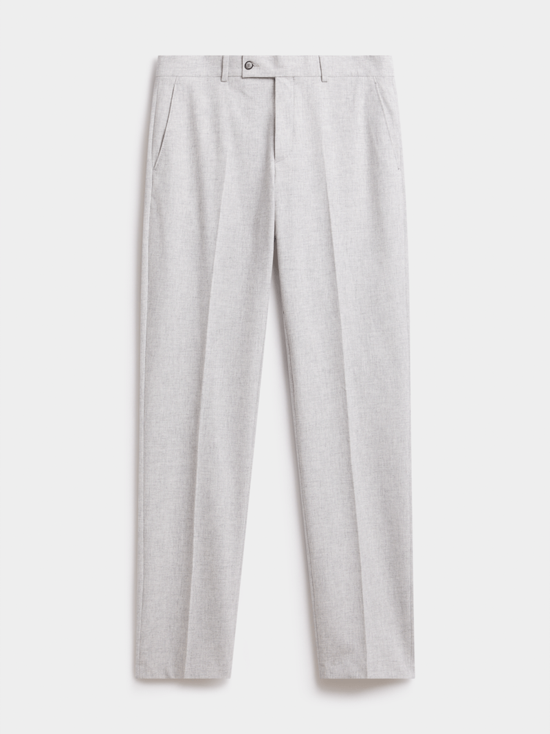 Embrace tailored sophistication with the Fabiani Men's Light Grey Peak Lapel Melange Suit Trouser. Crafted from a luxurious wool blend, this slim-fit trouser features a peak lapel and a stylish melange design. Perfect for formal occasions, pair it with a crisp shirt for a polished look. Care instructions: cool iron, dry clean only. Upgrade your wardrobe with this premium piece.