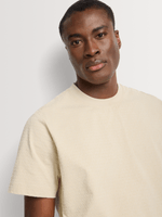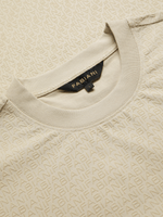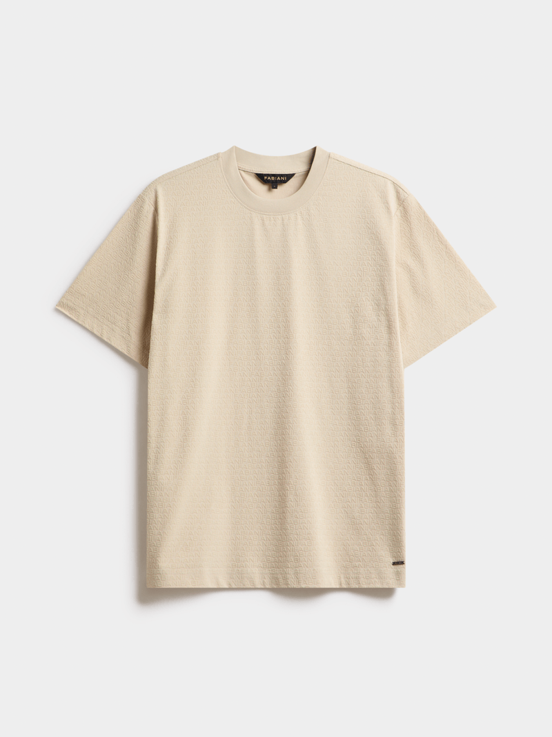 The Fabiani Men's Natural Beige Flocked Texture T-Shirt in stone is a must-have with its warm wash, cotton fabric, and regular fit. Perfect for any casual occasion, this premium brand tee is both stylish and comfortable. Easy to care for with cool iron and dry cleaning options. True to size for a classic look.